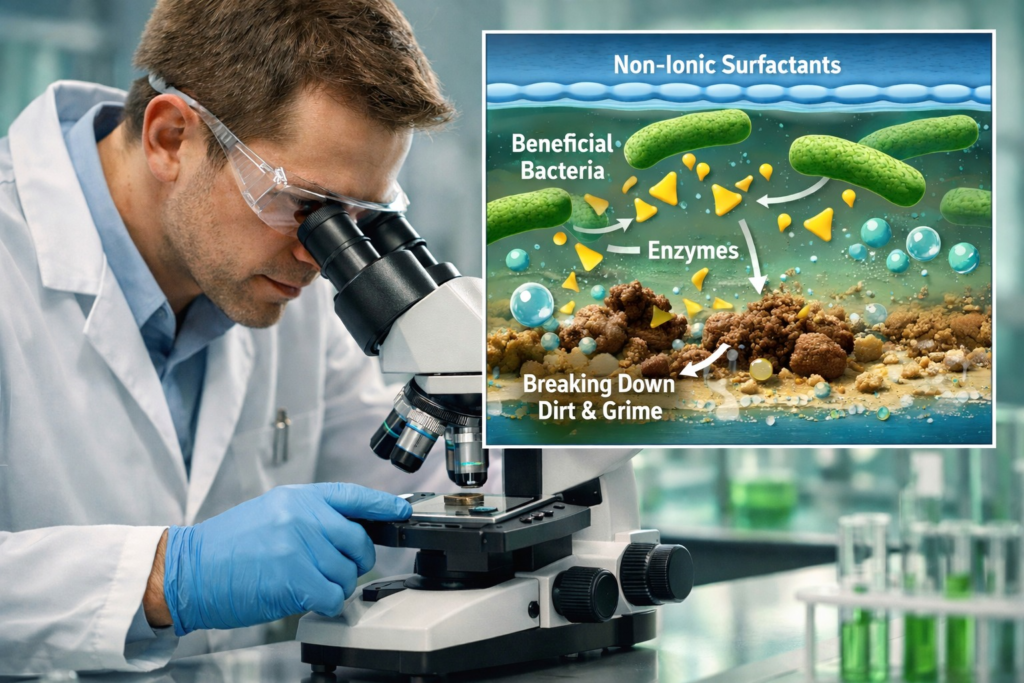 EMPERIA 1900 embraces enzyme-based innovation, inspired by nature itself. Derived from non-pathogenic bacteria, these enzymes work efficiently under mild conditions, reducing chemical stress on people and ecosystems. They clean, then quietly return to nature—biodegradable, safe, and responsible.